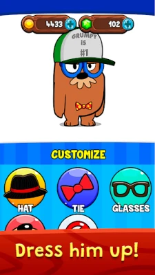 Take care of Mister Grumpy daily, feed him, bathe and put him to sleep! But of course, wake him up in the funniest and most annoying way possible, he'll hate it and tell you to go away! Also have fun remodeling your house and customizing his appearance, putting on hats, ties and many other accessories.