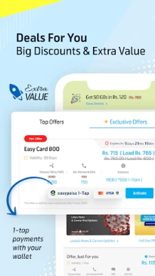 - Get Recharge done from choice of your Mobile Wallet account including Easypaisa or any Bank Debit/Credit Card.